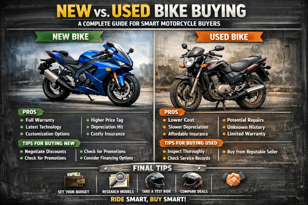 Choosing between a new bike and a used bike is one of the most important decisions in the motorcycle buying journey. Both options have their own advantages and challenges. The right choice depends on your budget riding experience usage needs and long term plans. Many buyers struggle with this decision and often feel confused by opinions from friends dealers and online forums.
